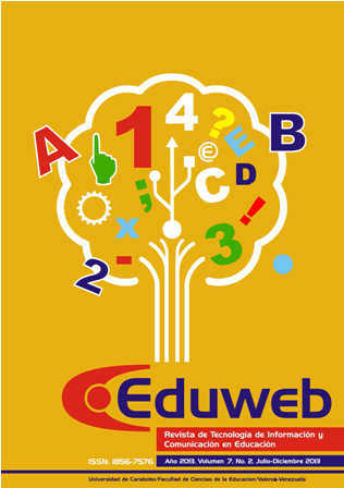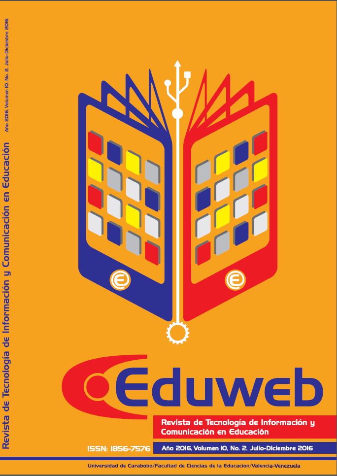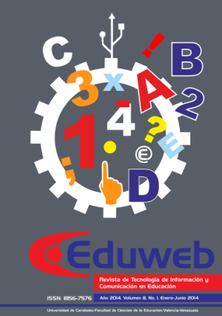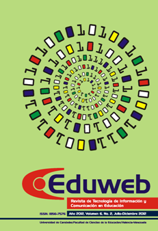 Revista Eduweb. Online ISSN: 2665-0223. Print ISSN: 1856-7576. Editora: Elsy Medina. Editorial contacto: Email: revista.eduweb@uc.edu.ve ; editoreseduweb@gmail.com - Editado por la Universidad de Carabobo, Venezuela, bajo los términos de la licencia Creative Commons CC-BY 4.0.